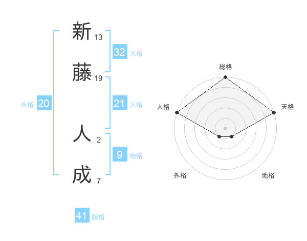 新藤 人成さんの天格は32画の5点!
