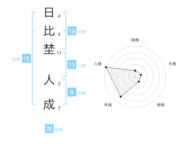 日比埜 人成さんの外格は15画の4点!