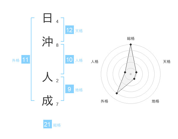 日沖 人成さんの総格は21画の5点!