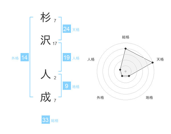 杉沢 人成さんの天格は24画の5点!