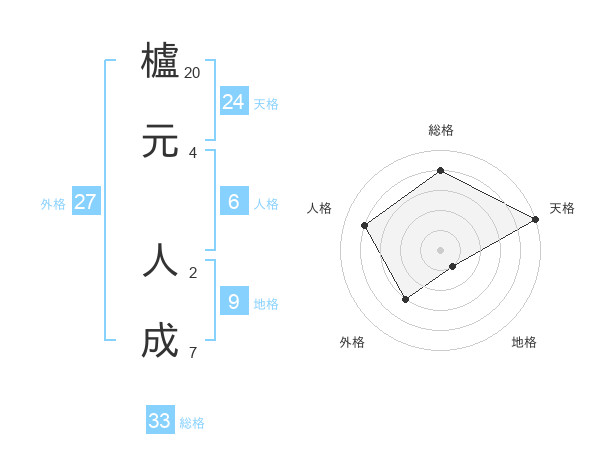櫨元 人成さんを姓名の画数から五運を鑑定