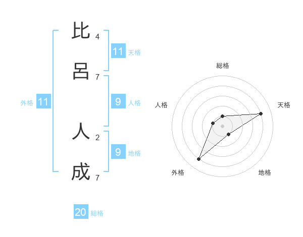 比呂 人成さんの外格は11画の4点!