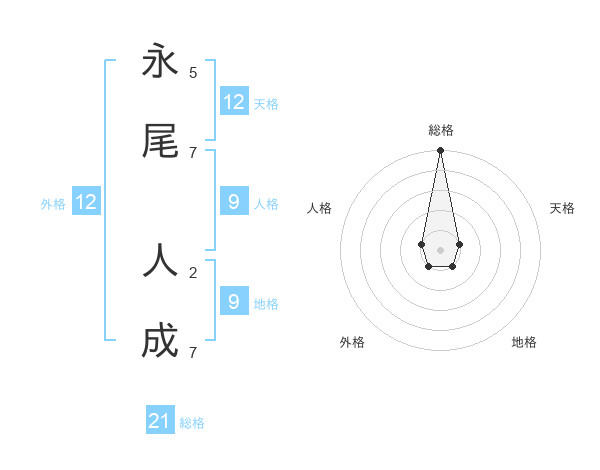 永尾 人成さんの総格は21画の5点!