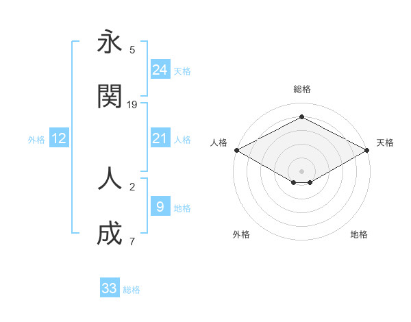 永関 人成さんを姓名の画数から五運を鑑定