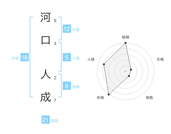 河口 人成さんの総格は21画の5点!