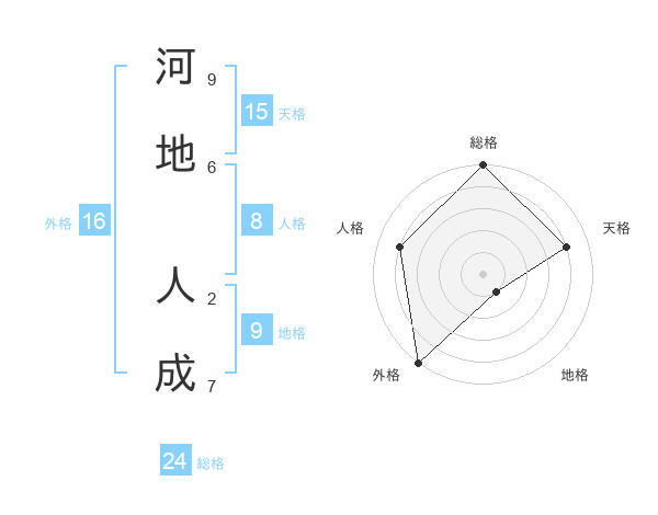 河地 人成さんの天格は15画の4点!