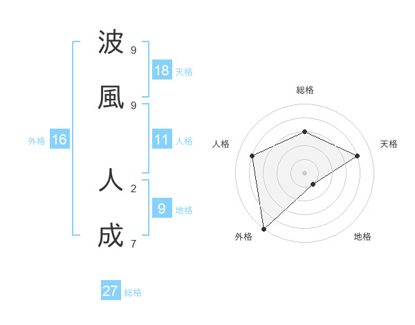 波風 人成さんの外格は16画の5点!