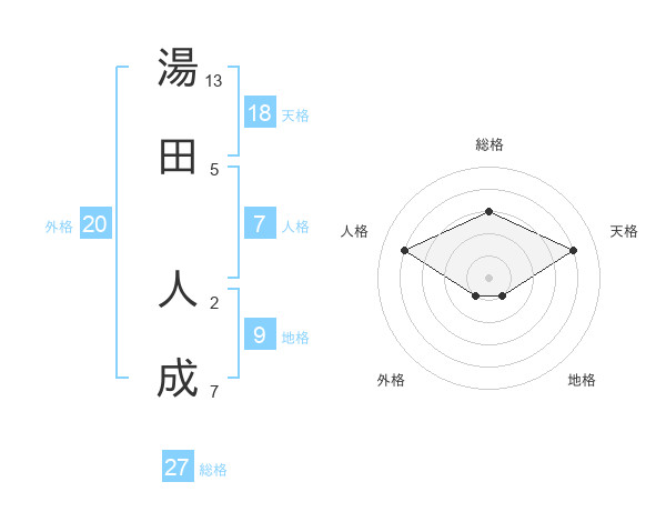 湯田 人成さんの総格は27画の3点!