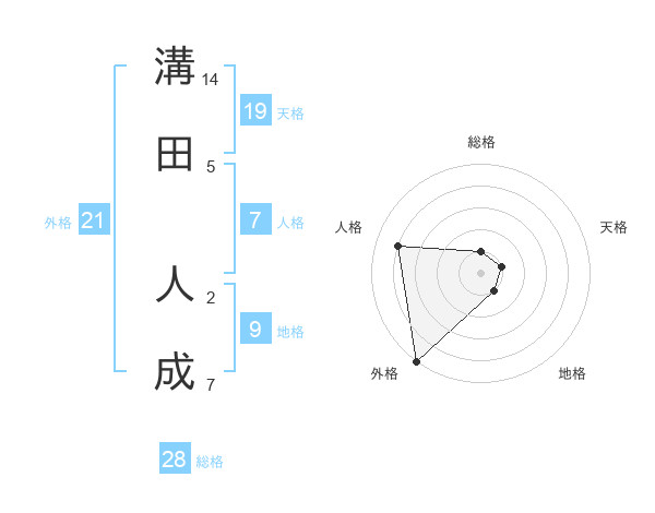 溝田 人成さんの外格は21画の5点!