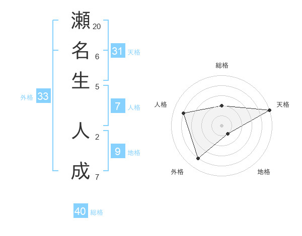 瀬名生 人成さんの総格は40画の2点!