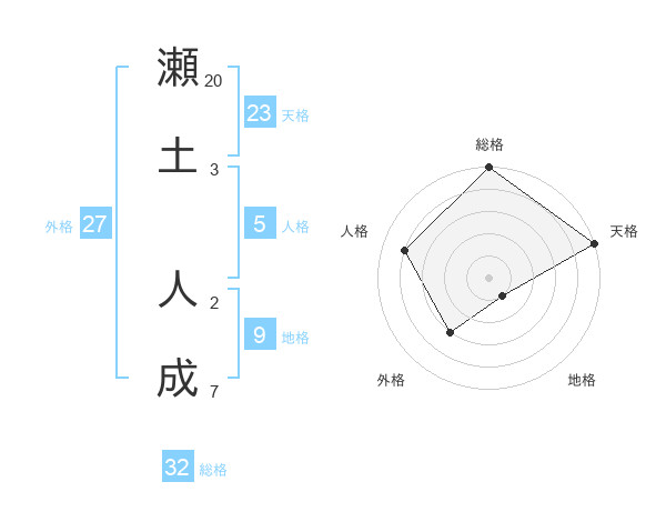 瀬土 人成さんの総格は32画の5点!