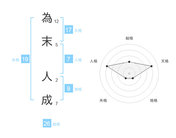 為末 人成さんの天格は17画の4点!