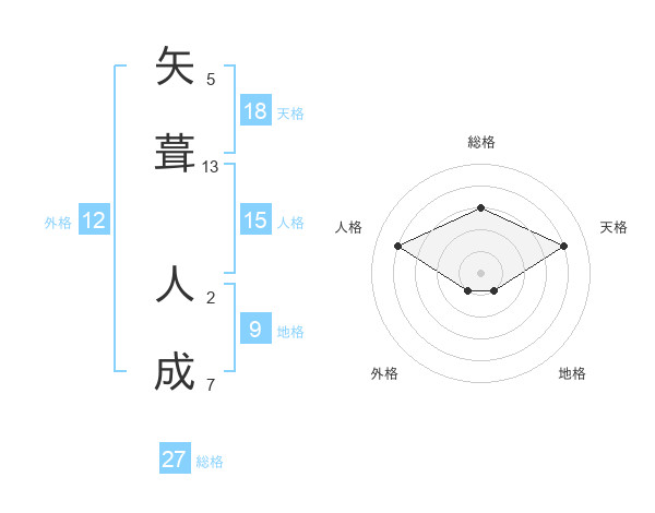 矢葺 人成さんの総格は27画の3点!