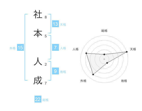 社本 人成さんの総格は22画の1点!
