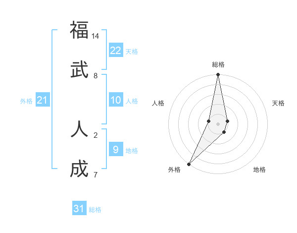 福武 人成さんの外格は21画の5点!