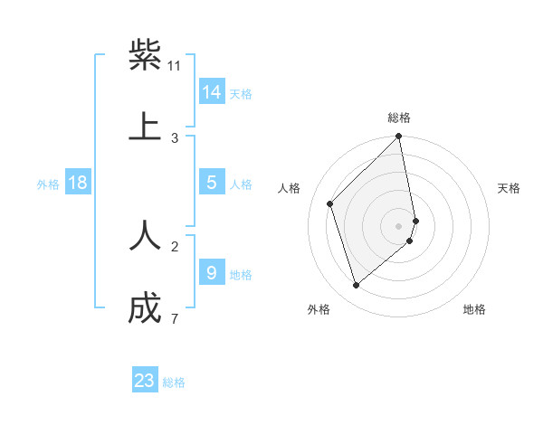紫上 人成さんの総格は23画の5点!