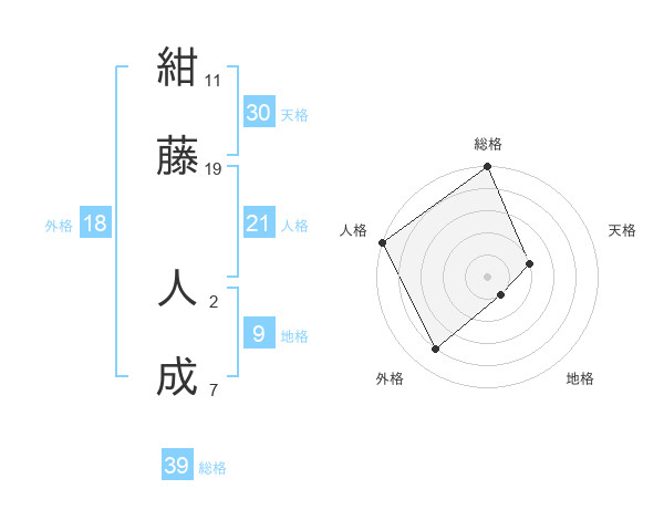 紺藤 人成さんの総格は39画の5点!