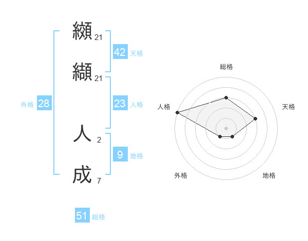纐纈 人成さんの総格は51画の3点!