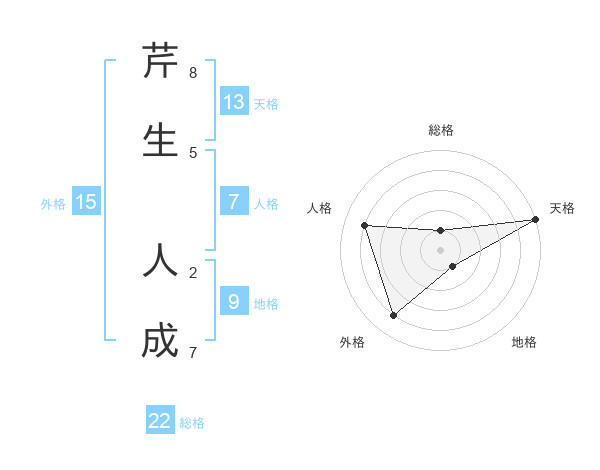 芹生 人成さんの天格は13画の5点!