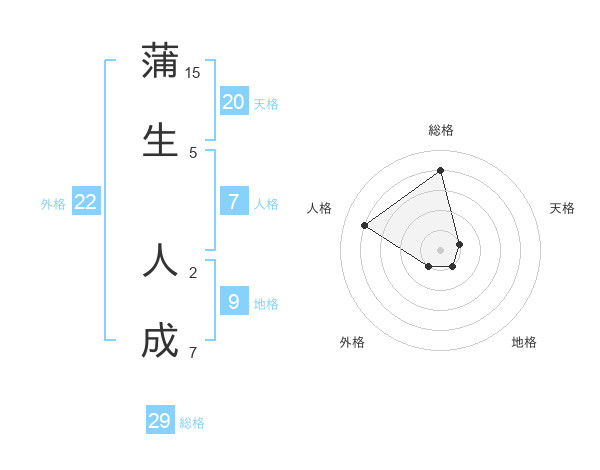 蒲生 人成さんを姓名の画数から五運を鑑定