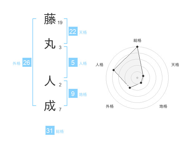 藤丸 人成さんを姓名の画数から五運を鑑定