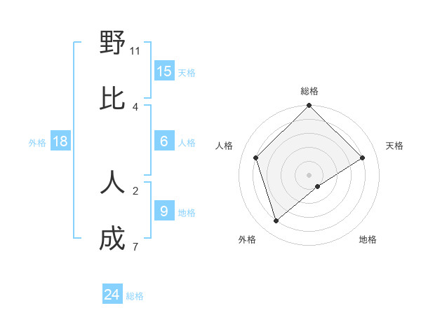 野比 人成さんの総格は24画の5点