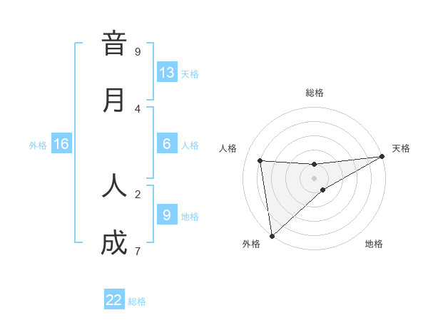 音月 人成さんの総格は22画の1点!