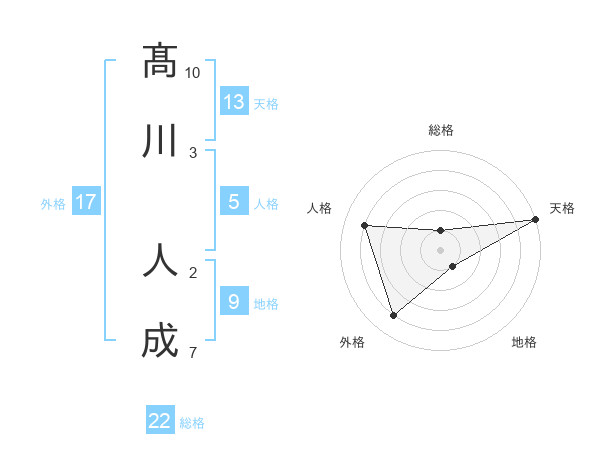 髙川 人成さんの天格は13画の5点!