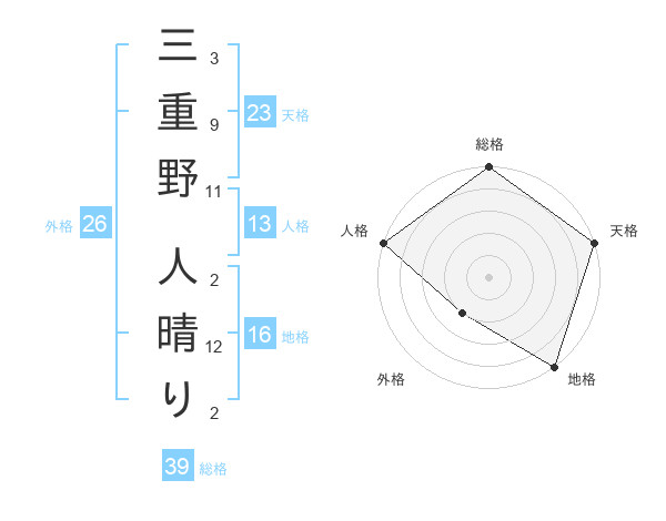 三重野 人晴りさんを姓名の画数から五運を鑑定