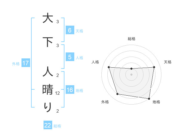 大下 人晴りさんを姓名の画数から五運を鑑定