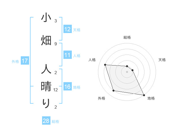 小畑 人晴りさんの外格は17画の4点!