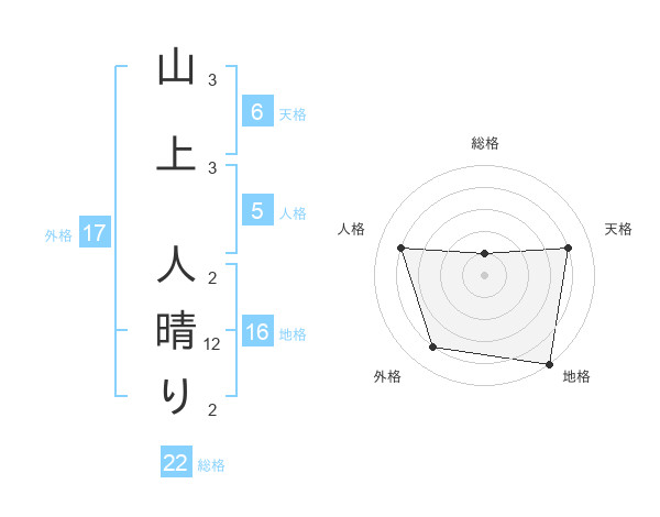 山上 人晴りさんの外格は17画の4点