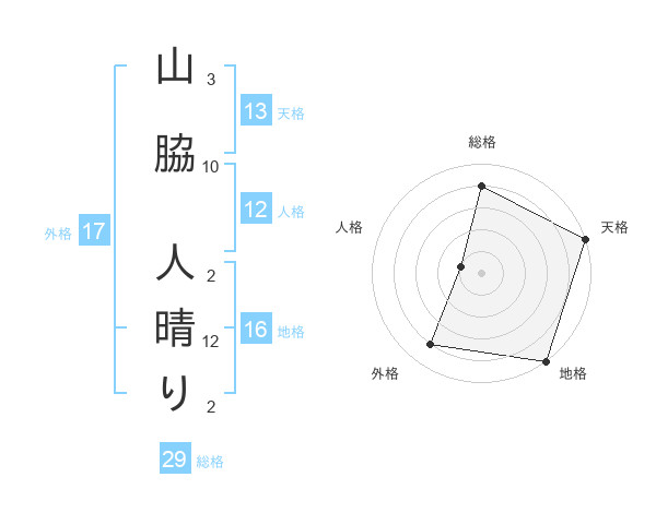山脇 人晴りさんを姓名の画数から五運を鑑定