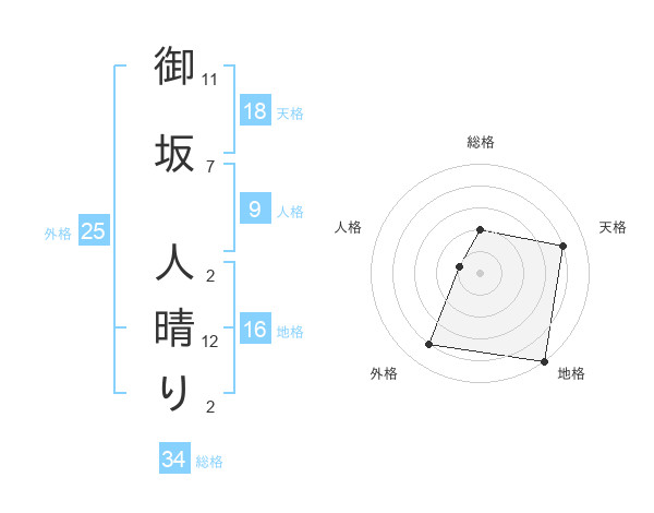 御坂 人晴りさんを姓名の画数から五運を鑑定