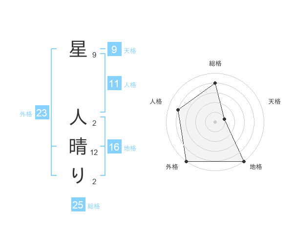 星 人晴りさんの総格は25画の4点!