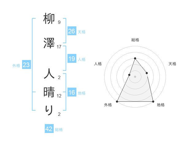 柳澤 人晴りさんの外格は23画の5点!
