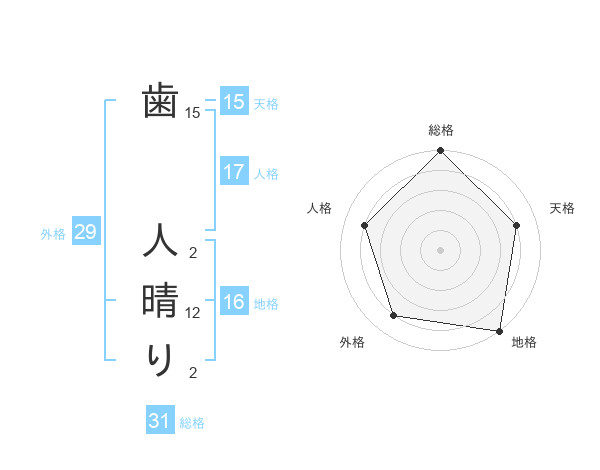 歯 人晴りさんを姓名の画数から五運を鑑定