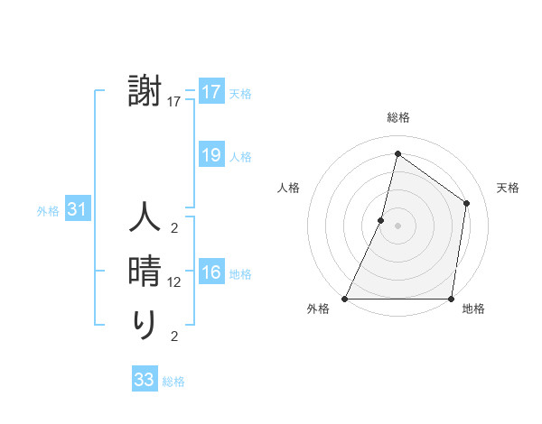 謝 人晴りさんの外格は31画の5点!