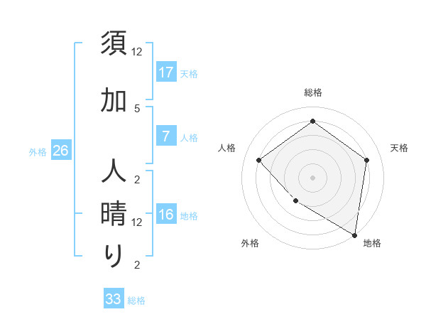 須加 人晴りさんを姓名の画数から五運を鑑定