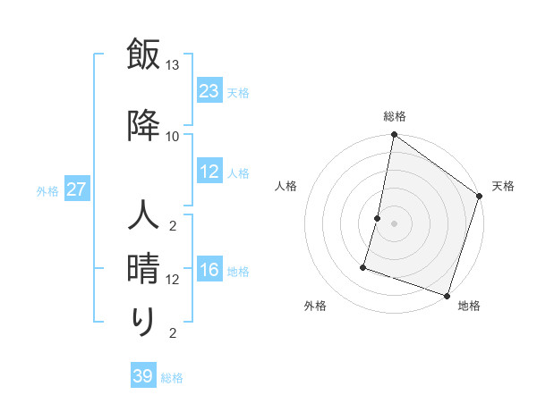 飯降 人晴りさんを姓名の画数から五運を鑑定