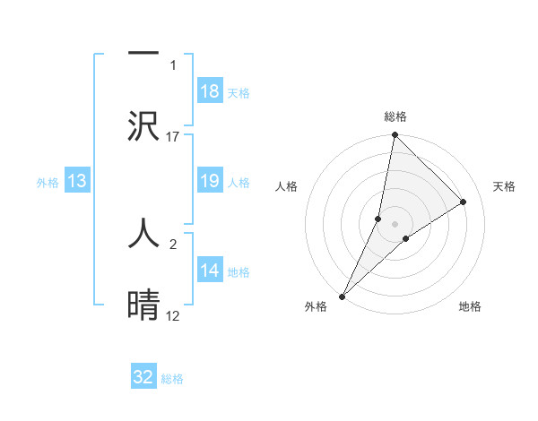 一沢 人晴さんの外格は13画の5点!