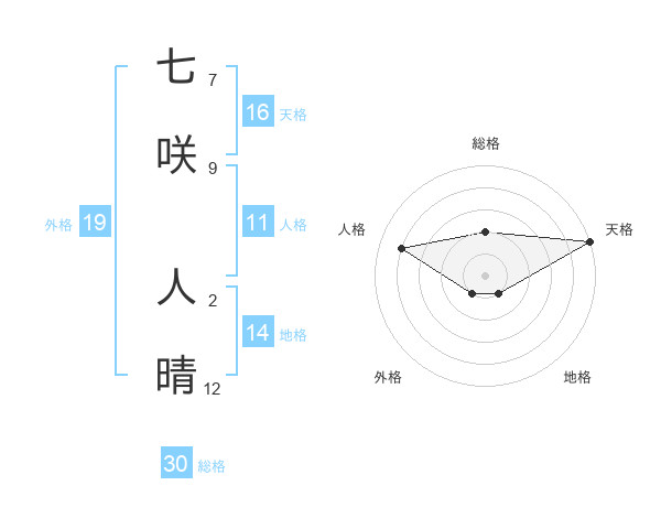 七咲 人晴さんの外格は19画の1点!