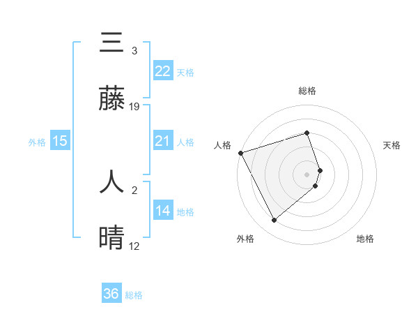 三藤 人晴さんを姓名の画数から五運を鑑定