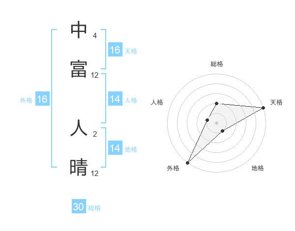 中富 人晴さんの外格は16画の5点!
