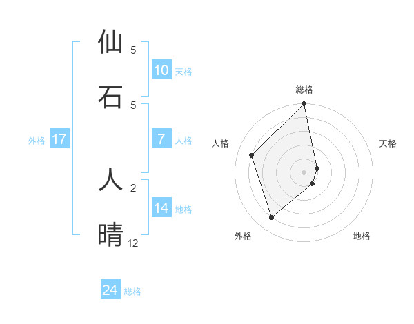 仙石 人晴さんを姓名の画数から五運を鑑定