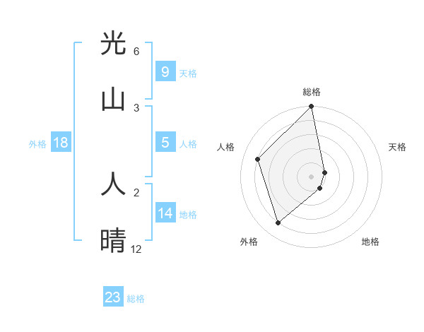 光山 人晴さんの総格は23画の5点!