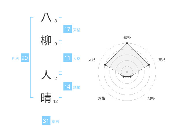 八柳 人晴さんの総格は31画の5点!