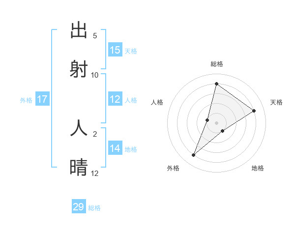 出射 人晴さんの天格は15画の4点!