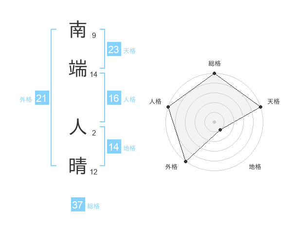 南端 人晴さんの天格は23画の5点!