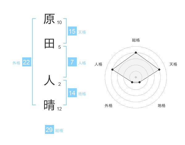 原田 人晴さんの総格は29画の4点!